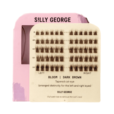 The Silly George Pop-On lashes are lashes like you’ve never seen before. This new technology features a pre-glued pad on each cluster for incredible hold. This means no need for additional tricky & messy bond/seal products. These Pop-On Lashes are just that: clusters that you simply pick up from the box and “pop” directly onto the waterline underneath your natural lashes. The box comes with a QR code that links to an application video, holding your hand through your first application, ensuring you perfect your technique and make the most of these lashes.