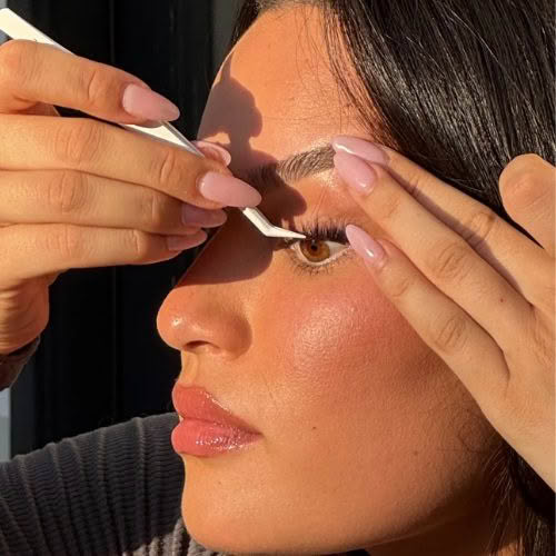 - Pick up clusters or individual lashes at a 45° angle, gripping only the lash fibers. Its sharp tip allows for precise placement, so handle carefully to avoid accidental damage to lashes or skin.