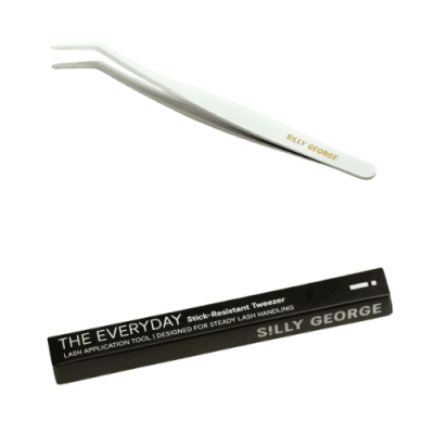 The Silly George Edge Stick-Resistant Tweezer is built for ultimate precision in lash application. Its fine-point tip allows you to pick up even the tiniest lash fibers, while the 45° angled design follows the natural lash line for exact placement. The Edge tweezer’s tip clamps down fully flat, giving you a secure grip for longer hold and perfect placement of clusters or strips every time. Ideal for separating lashes and positioning them exactly where you need them. Comes with a vegan leather pouch to protect the fine-point tip.